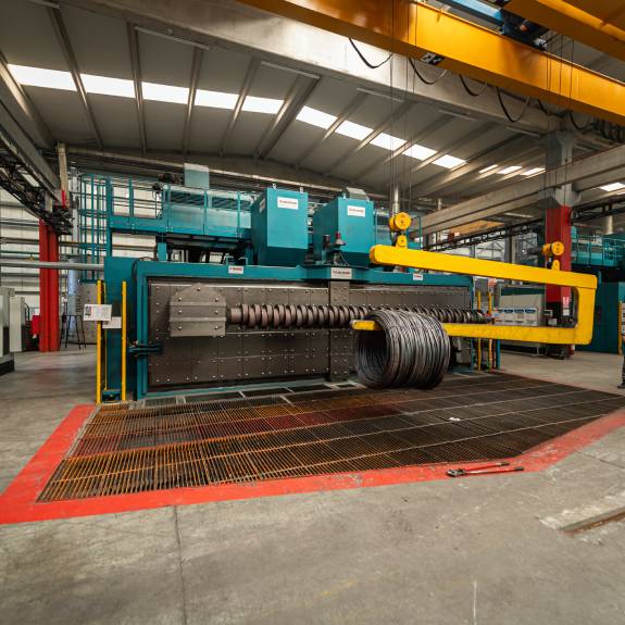 Soğuk Şekillendirmesi tamamlanan yarı mamülleri nihai mekanik özelliklerine kavuşturabilmek için kontinü olarak 7/24 çalışan ısıl işlem fırınlarımız kullanılmaktadır. Tüm ürünler bu proseste kontrollü atmosferde çeliğin ostenit fazına ısıtılarak tutulması ve yağda ani soğutulması ile 8, 10 veya 12 kaliteye ulaşmaktadır.